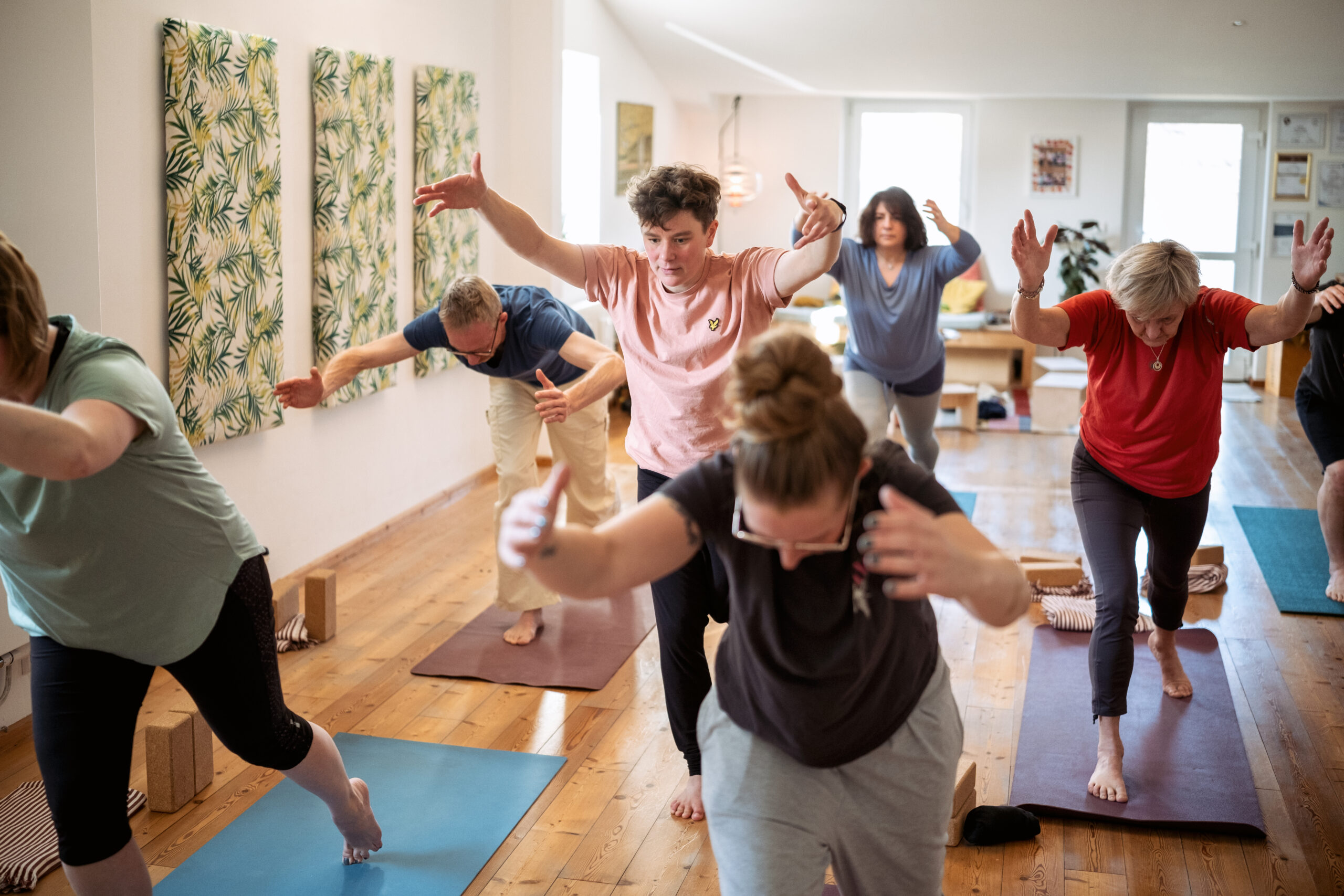 Bei unseren atemgeführten Yogaklassen tauchst du immer tiefer in deinen Körper ein – innen wird es ruhig und du wirst beweglicher. Gönn dir dieses ganzheitliche Erlebnis, das dich stark und glücklich macht!