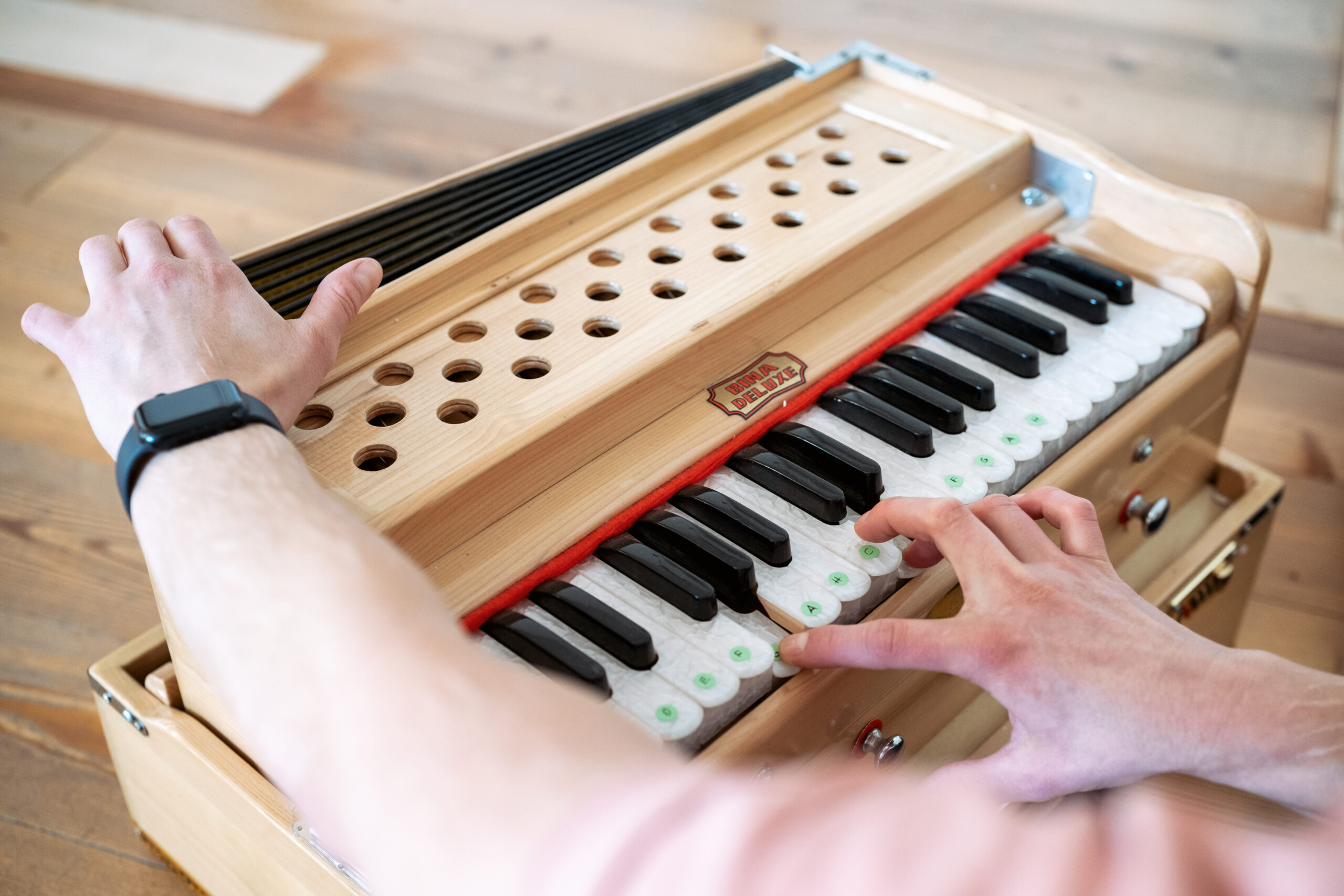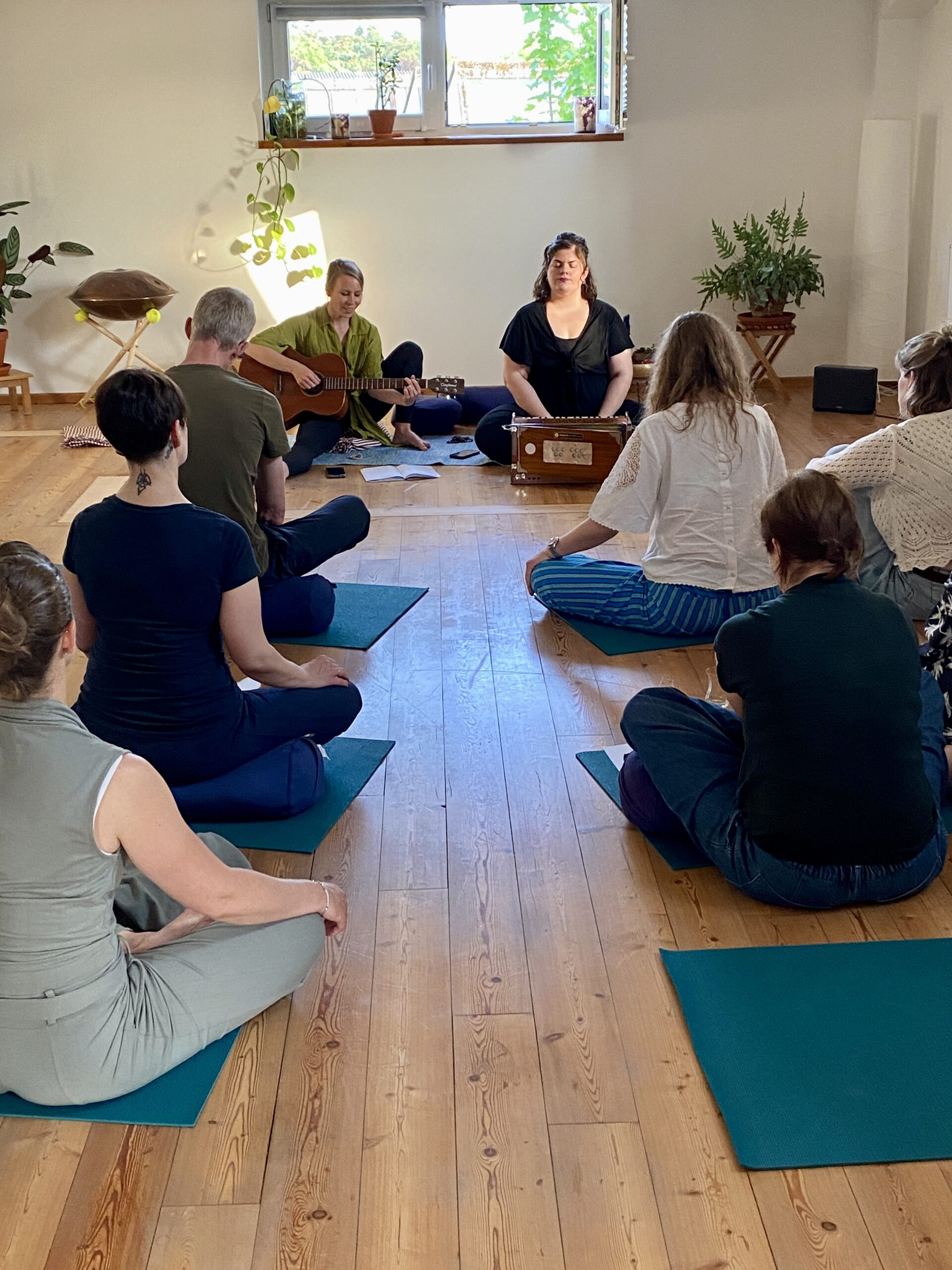 - Lass dich verzaubern, von den Klängen des Harmoniums und der Gitarre und dem Gesang der Gruppe.